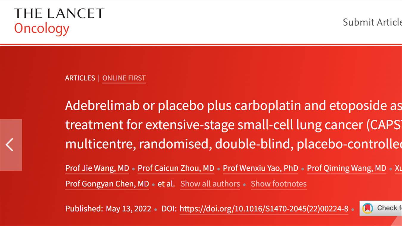 壹号娱乐卡瑞利珠单抗联合阿帕替尼最新研究成果荣登《柳叶刀·肿瘤》